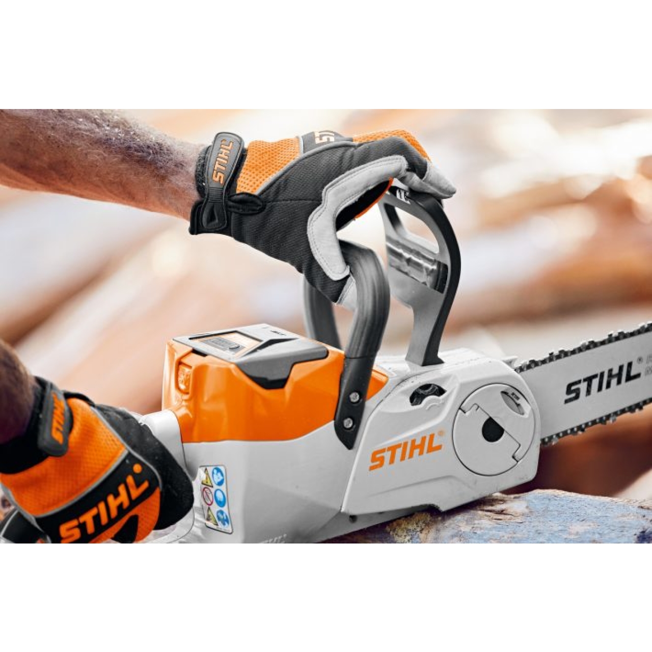 Leichte Akku-Motorsäge für die Grundstückspflege und einfache handwerkliche Tätigkeiten. Softgriff, schneller und komfortabler Kettenwechsel durch STIHL Kettenschnellspannung, Kettenbremse QuickStop Super, Öltank mit transparentem Sichtfenster, hohe Schnittleistung durch 1/4"-Pm³-Sägekette. Serienmäßig mit Akku AK 20 und Ladegerät AL 101.